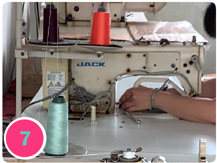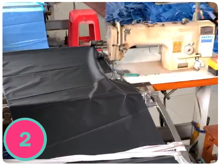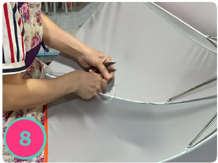 将裁剪好的伞布小片逐片缝合,形成完整的伞面。